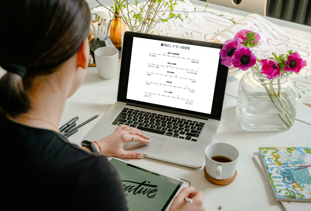 クライエントに、指定URLの検査サイトにログイン頂き、スマートフォン、タブレット、パソコン等の端末を利用して回答していただきます。
