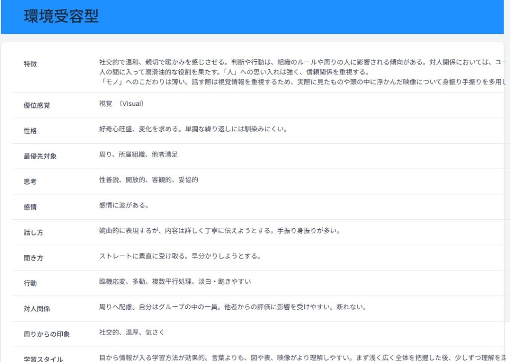 採用するかしないかの判断基準ではなく、当該人物の思考、資質等を判断しキャリアコンサルティングをサポートすることを目的としています。