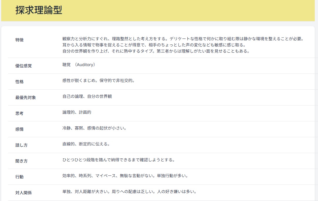 採用するかしないかの判断基準ではなく、当該人物の思考、資質等を判断しキャリアコンサルティングをサポートすることを目的としています。