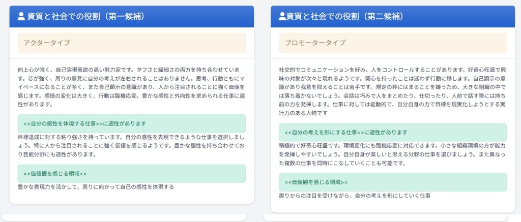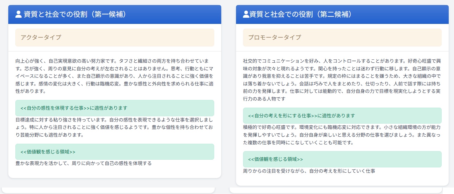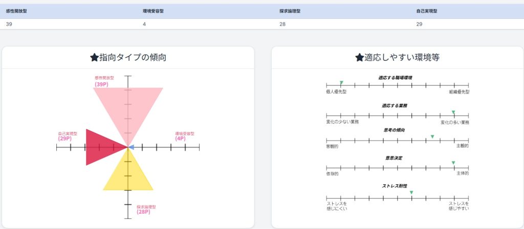 • 指向タイプの傾向: 価値観、興味、スキル、強み弱みの把握